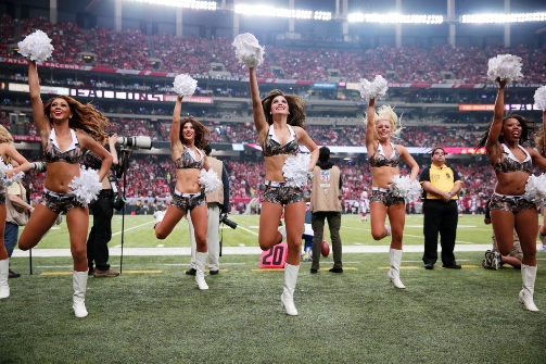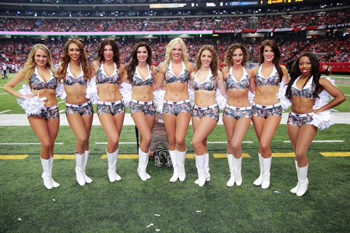 We love these photos we received from coach Chato Waters of the Atlanta Falcons Cheerleaders at their military game! Chato selected an online top and short and made custom changes to make it their own design. She also selected a specialty military fabric to set the theme. Thank you to photographer Art Morrison for taking these great photos and to the cheerleaders for supporting our military.
