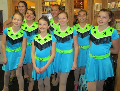 The Rochester Rhythm and Blades Synchronized Skating Team in Minnesota has been a longtime customer of The Line Up. We are always eager to see the ideas that Vikki Dalquist, RFSC Synchronized Skating Director, brings to us every year! For the 2012-2013 season, each team is skating to a “Western” theme. The Open Adult Team also shared a photo of the “London” dress they ordered in 2011. Thanks for sharing the great photos!