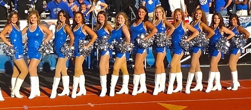 The Dazzlers made the trim around the neckline contrast the beautiful blue zsa zsa where the GWU team went with a tone on tone spectacular dress. We love both!