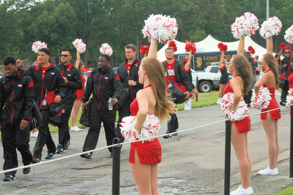 The team not only can be spotted on the sidelines and the nationals floor, but also throughout the city of Jonesboro as they are very involved in appearances, community service, etc.