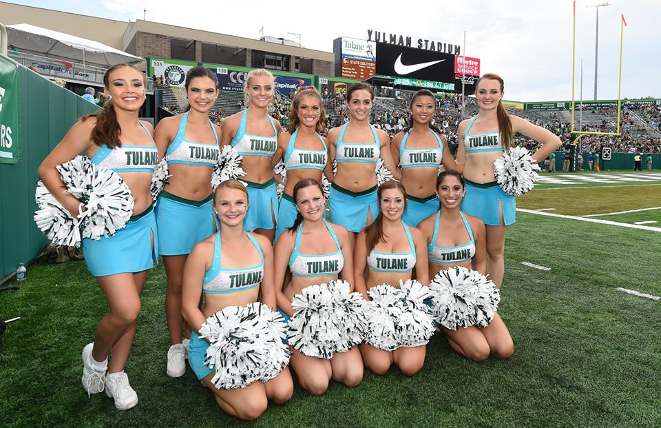 DSC_8478_qhdr1The gorgeous ladies of the Tulane University Shockwave Dance Team have been rockin' it out on the sidelines in their signature green and turquoise uniforms. The team took our webstyle top and added lettering to make this uniform truly their own. With all the sparkle and bling on top, they kept the skirt simple and subtle.