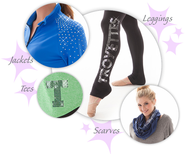 Our latest embellishment technology at the Line Up: Spangles! Spangles are threadless sequins that are applied to a garment with heat-set glue, adding sparkle without the expense of rhinestones! Spangles are one of our favorite ways to add branding to your team apparel, camp wear or practice outfits. We have added many new designs to our 2015-2016 Team Apparel & Warm-Ups Catalog with spangle options included in the price!